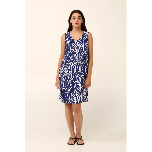 - Vamp γυναικείο φόρεμα εμπριμέ μπλέ viscose relaxed fit 20504