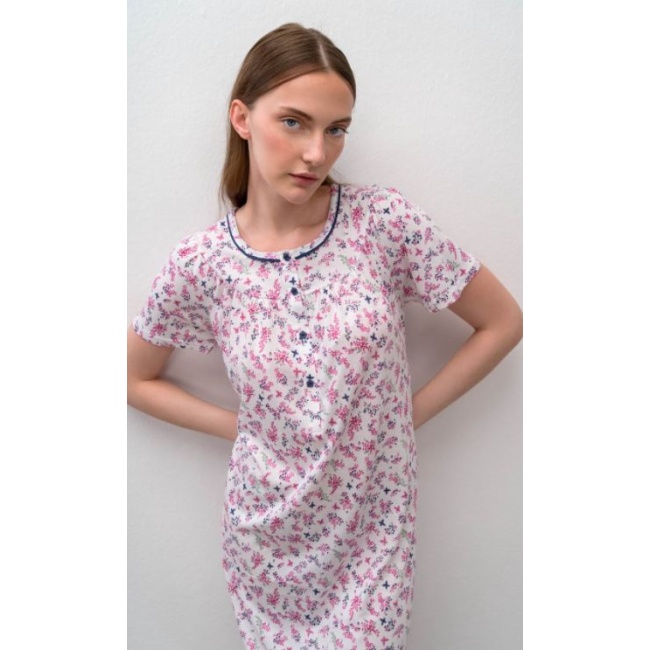 - Vamp γυναικείο νυχτικό λευκό εμπριμέ cotton regular fit 16008