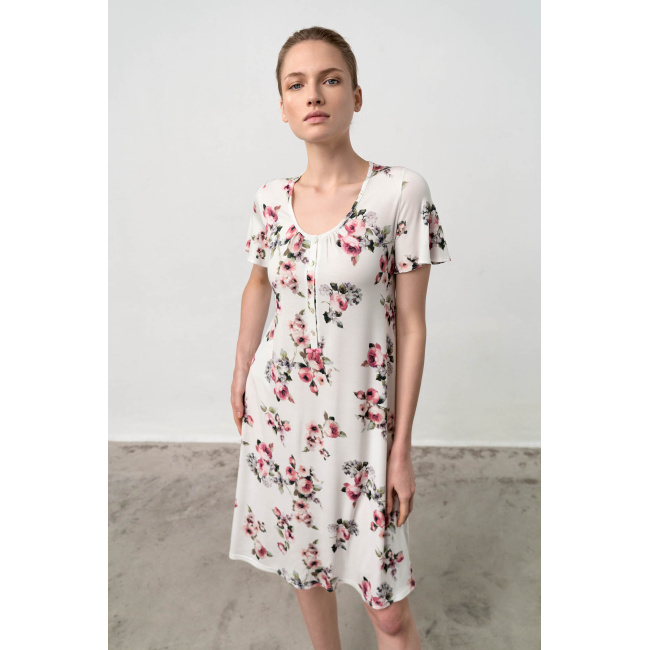 - Vamp γυναικείο νυχτικό λευκό φλοράλ modal regular fit 18016