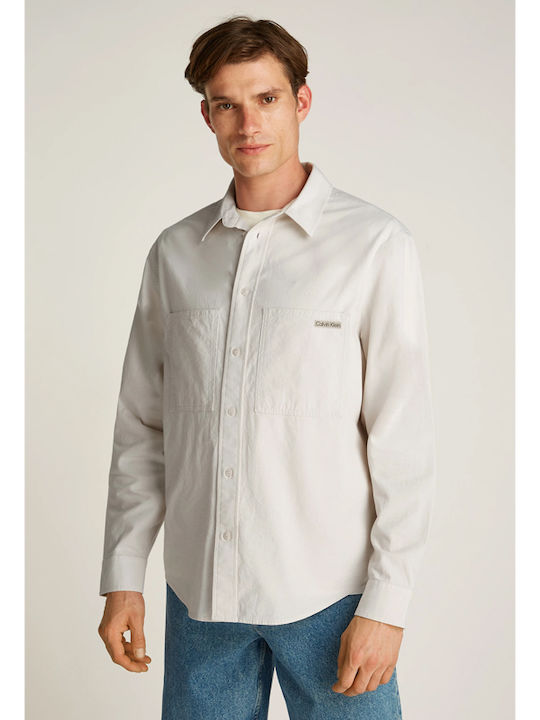 Calvin Klein ανδρικό relaxed βαμβακερό overshirt ιβουάρ J30J326726-pdh moon beam