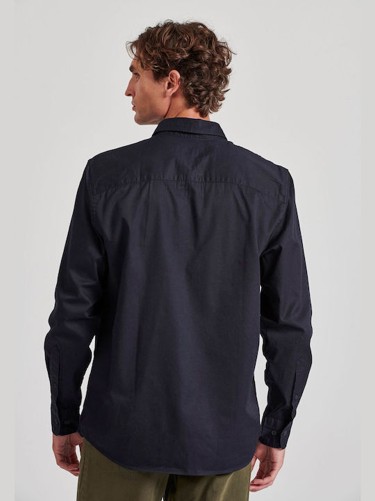 Funky Buddha ανδρικό βαμβακερό πουκάμισο μπλε FBM010-015-05-navy