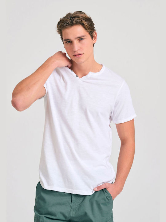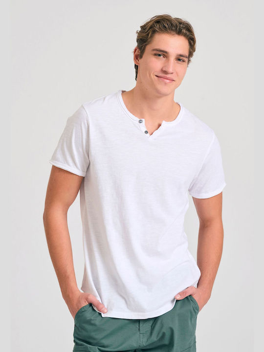 Funky Buddha ανδρικό βαμβακερό henley t-shirt λευκό FBM011-004-04-white