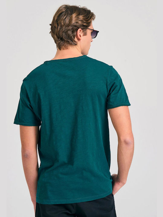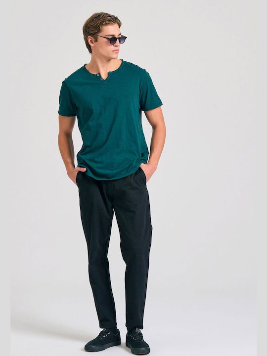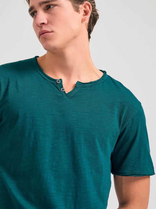 Funky Buddha ανδρικό βαμβακερό henley t-shirt πετρόλ FBM011-004-04-dark sea