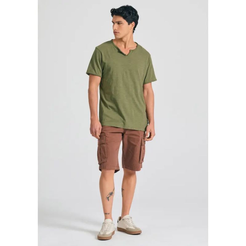 Funky Buddha ανδρικό βαμβακερό henley t-shirt χακί FBM011-004-04-hunter green