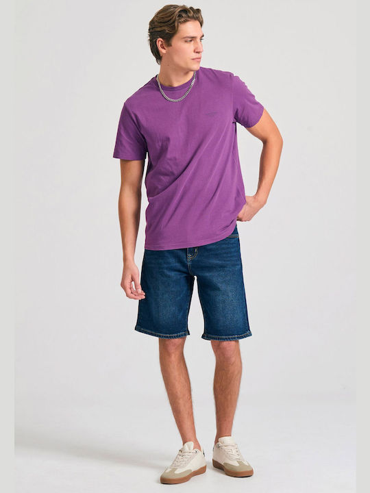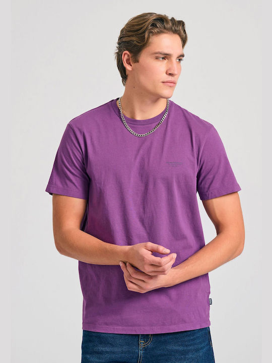 Funky Buddha ανδρικό βαμβακερό regular t-shirt μωβ FBM011-001-04-md palm