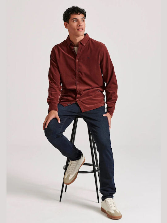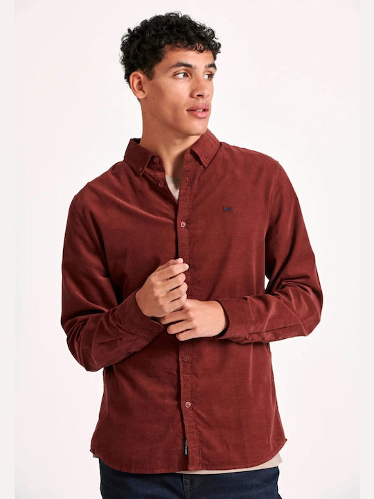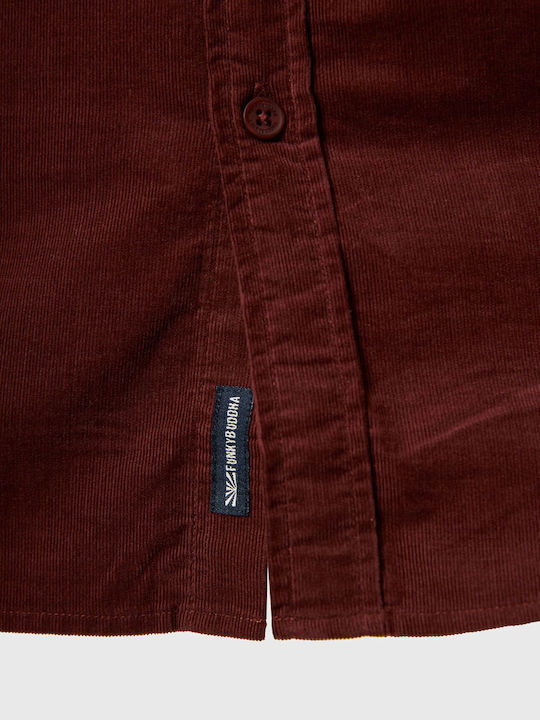 Funky Buddha ανδρικό κοτλέ βαμβακερό πουκάμισο μπορντό FBM010-002-05-brick