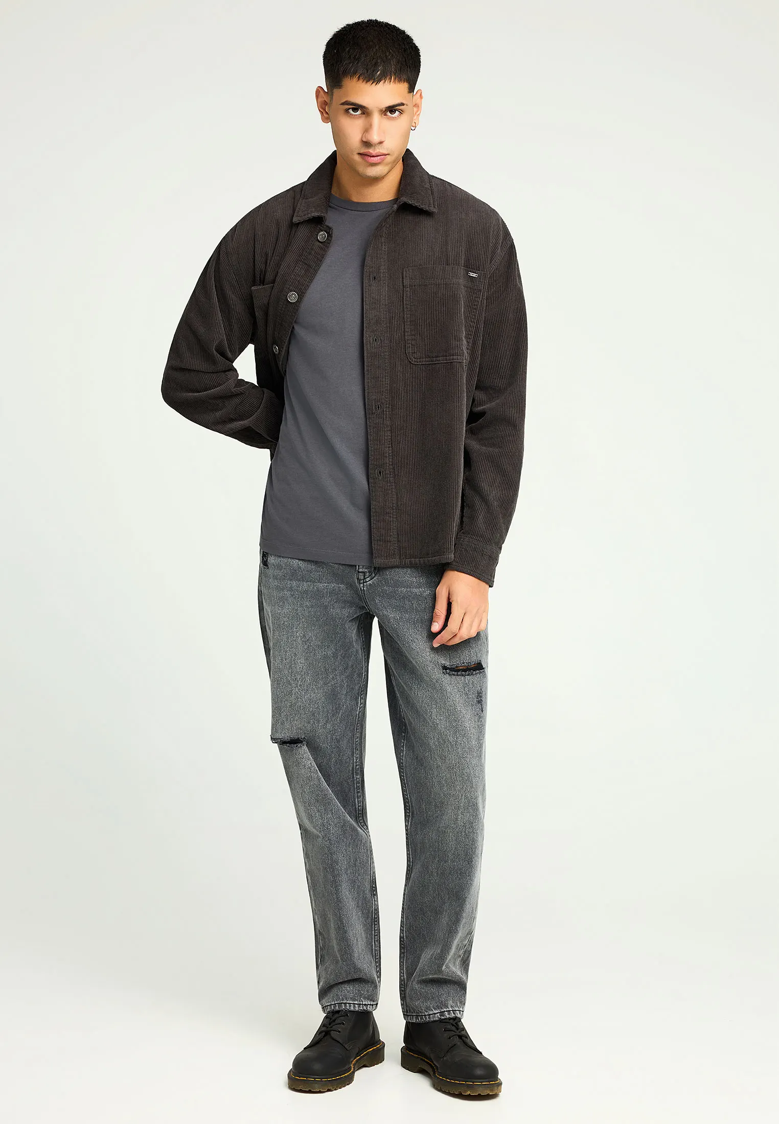 Funky Buddha κοτλέ πουκάμισο overshirt γκρι FBM012-056-05-anthracite