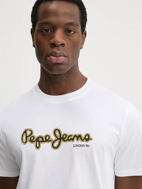 Pepe Jeans ανδρικό βαμβακερό regular t-shirt λευκό PM509721-800
