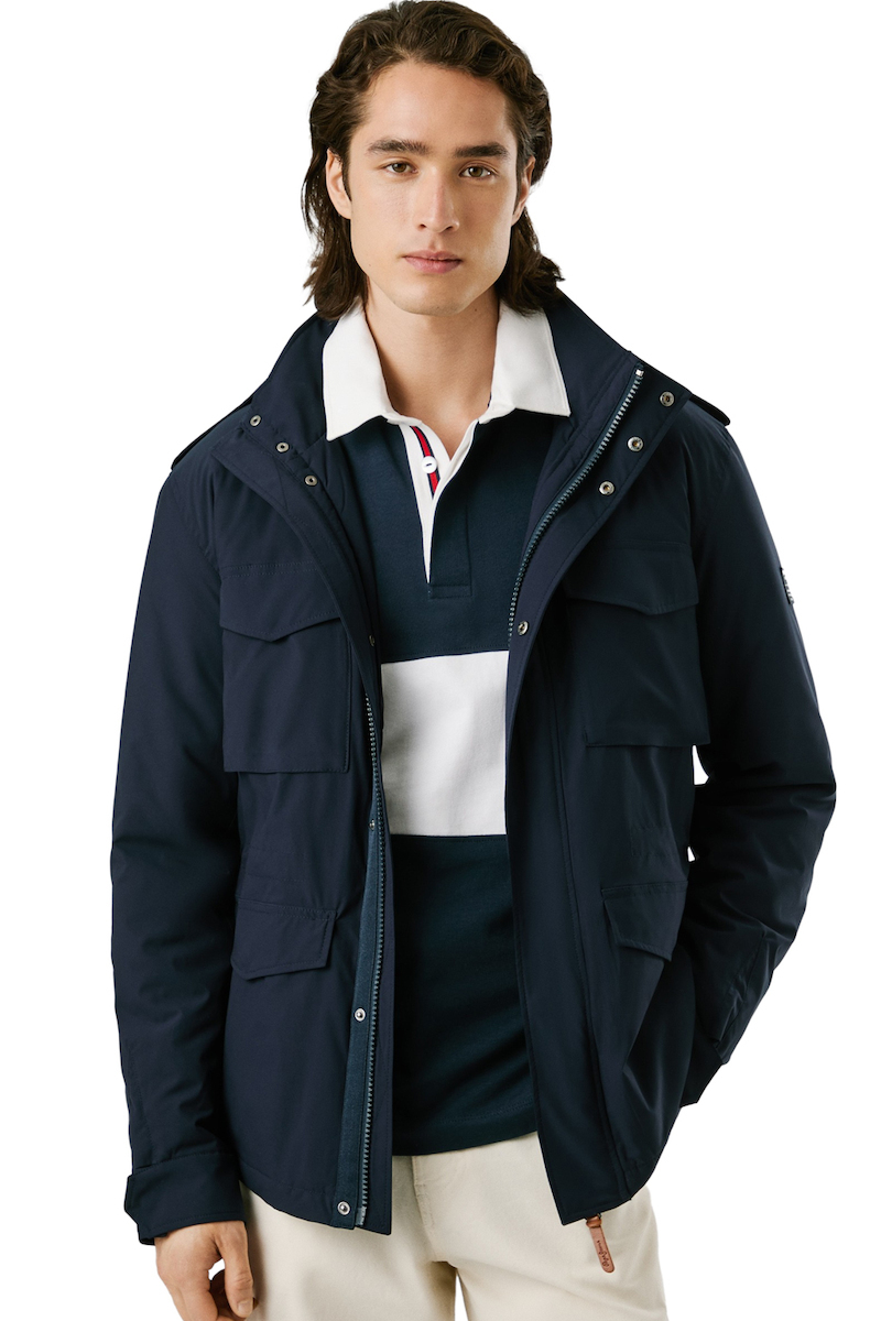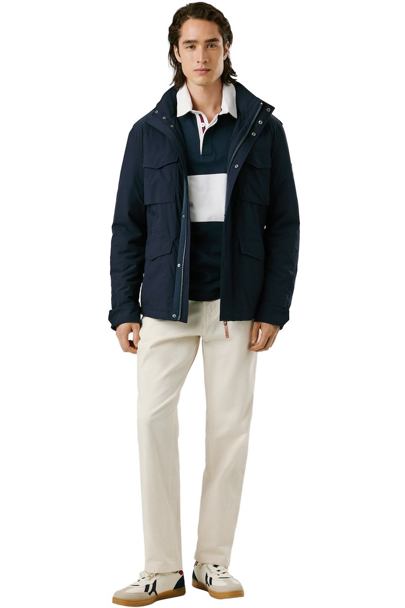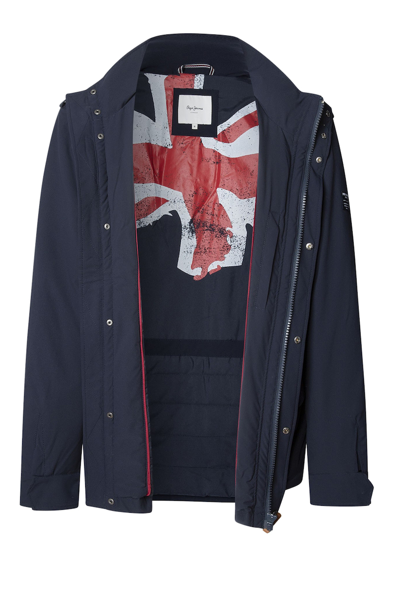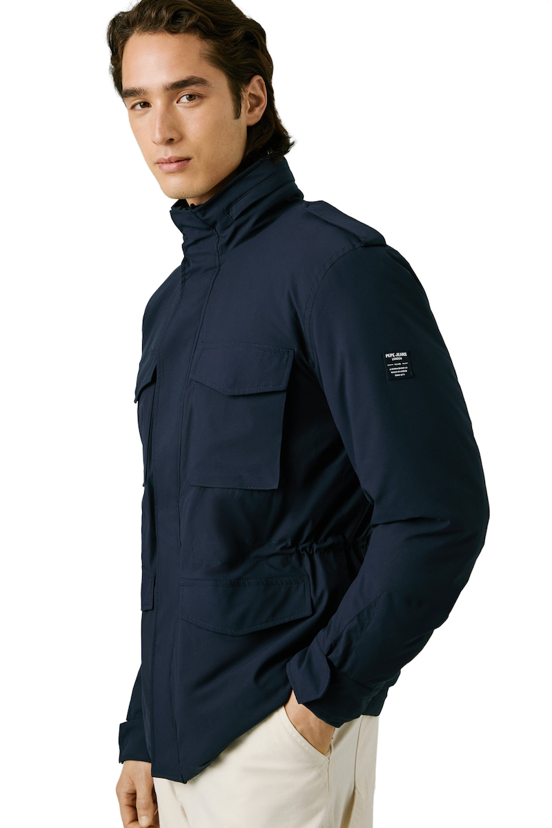 - Μπουφάν από μικροΐνες, με ψηλό λαιμό, κρυφή κουκούλα, επωμίδες & κλείσιμο μπροστά με φερμουάρ και κουμπιά snaps. Δύο flap τσέπες μπροστά και δυο στο στήθος, ρυθμιζόμενες μανσέτες με κουμπιά snaps & ετικέτα logo Pepe Jeans στο μανίκι.