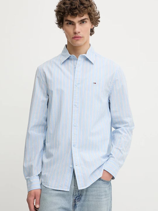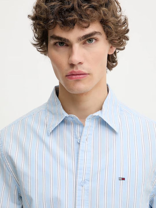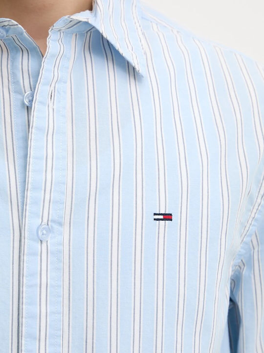 Tommy Jeans ανδρικό βαμβακερό regular πουκάμισο σιέλ ριγέ DM0DM21693-C3Q