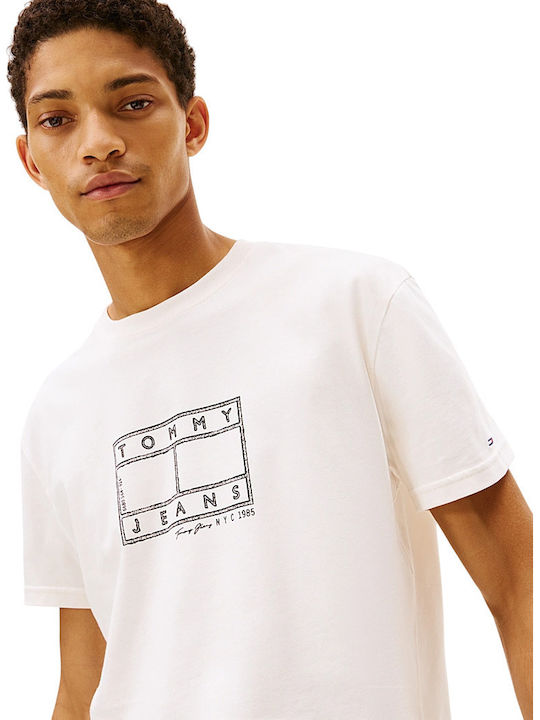 Tommy Jeans ανδρικό βαμβακερό regular t-shirt λευκό DM0DM22317-YBH