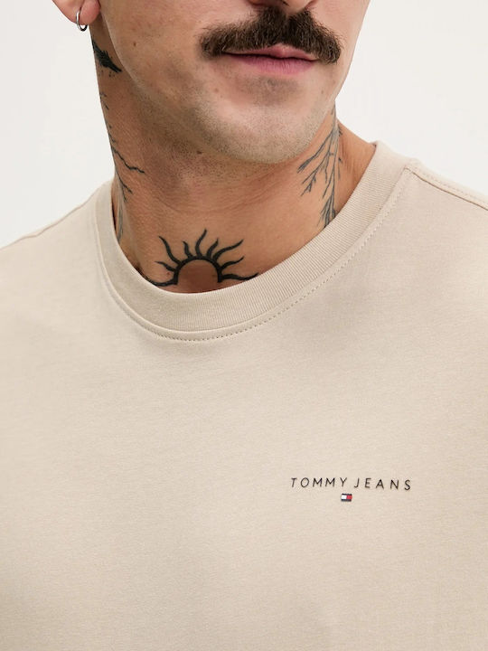 Tommy Jeans ανδρικό βαμβακερό slim t-shirt μπεζ DM0DM21780-ABY