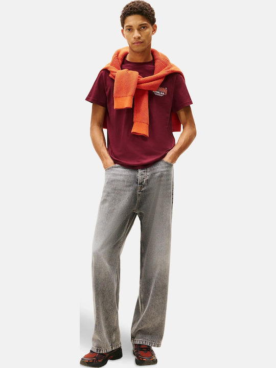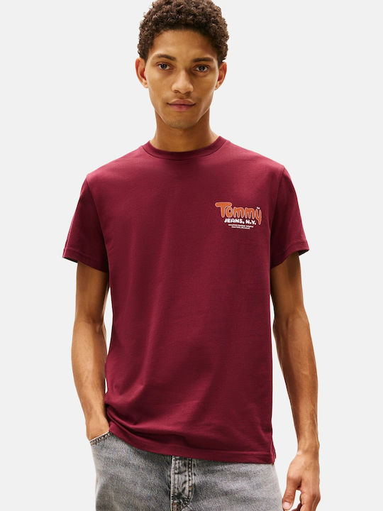 Tommy Jeans ανδρικό βαμβακερό slim t-shirt bordo DM0DM22049-XIU