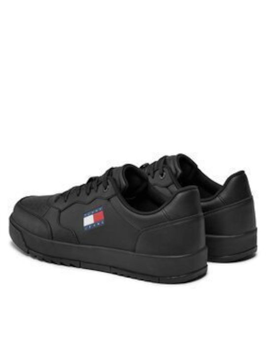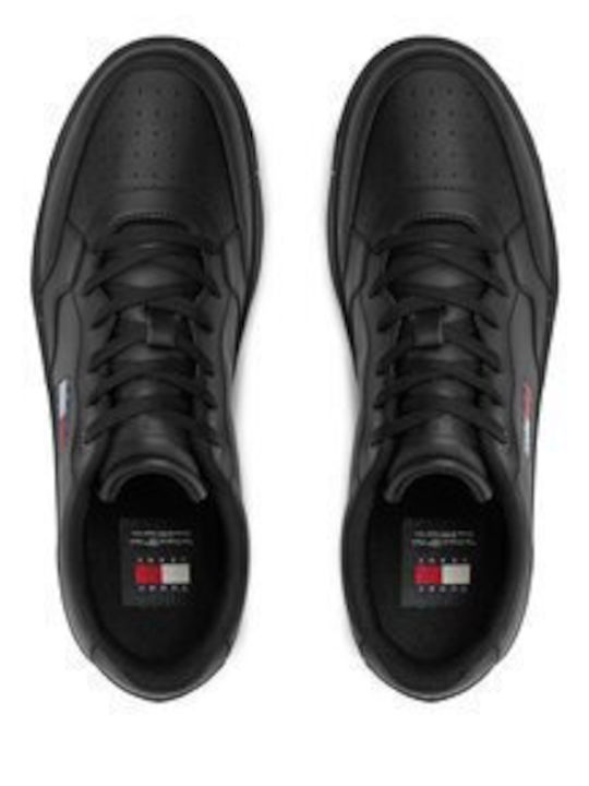 Tommy Jeans ανδρικό δερμάτινο sneaker retro basket μαύρο EM0EM01397-bds