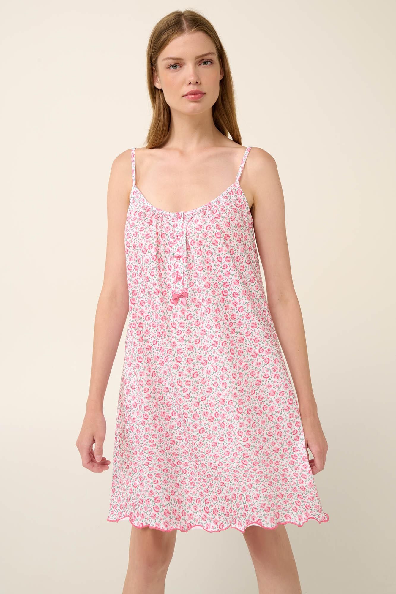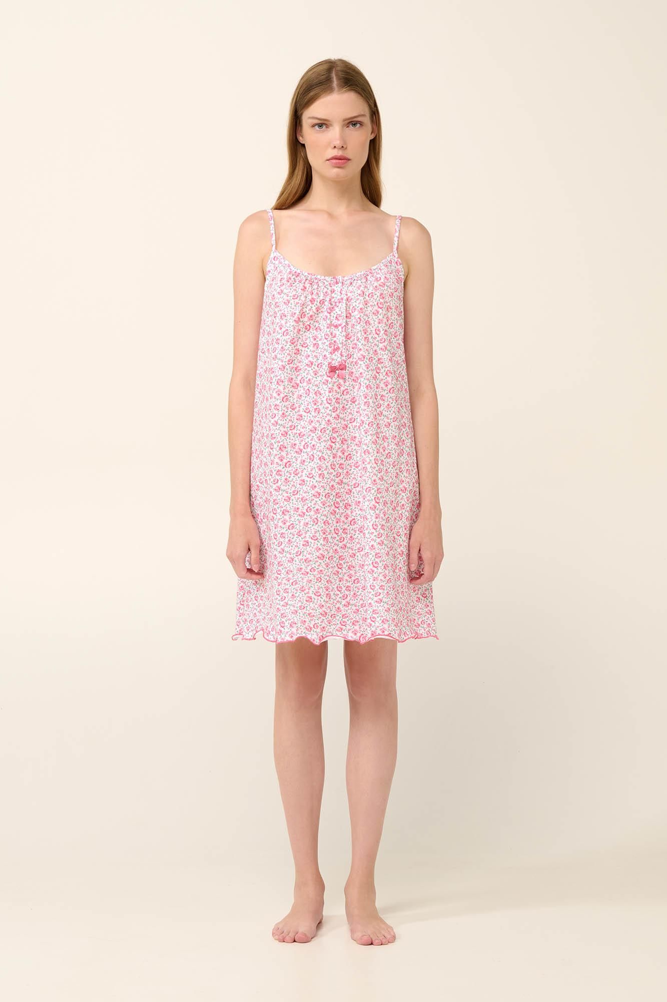 Καλοκαιρινό νυχτικό floral cotton με λεπτές τιράντες