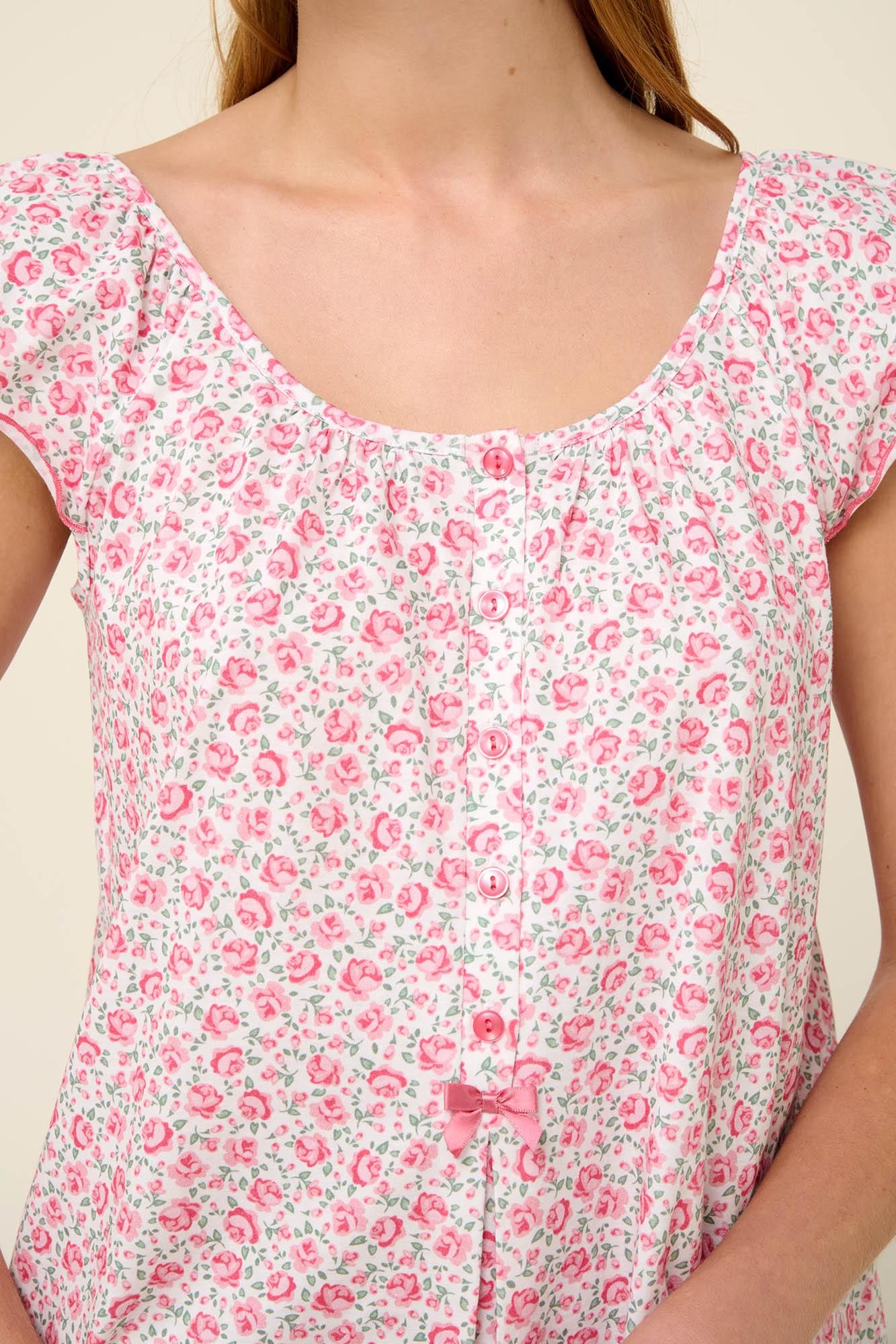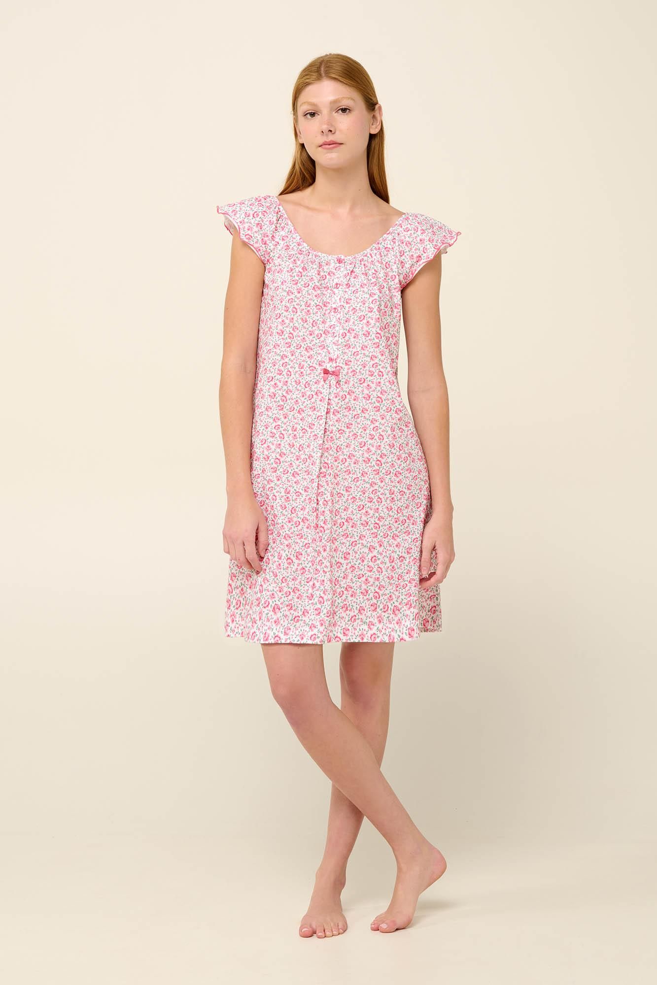 Vamp γυναικείο νυχτικό floral print cotton regular fit 22250-pink dove
