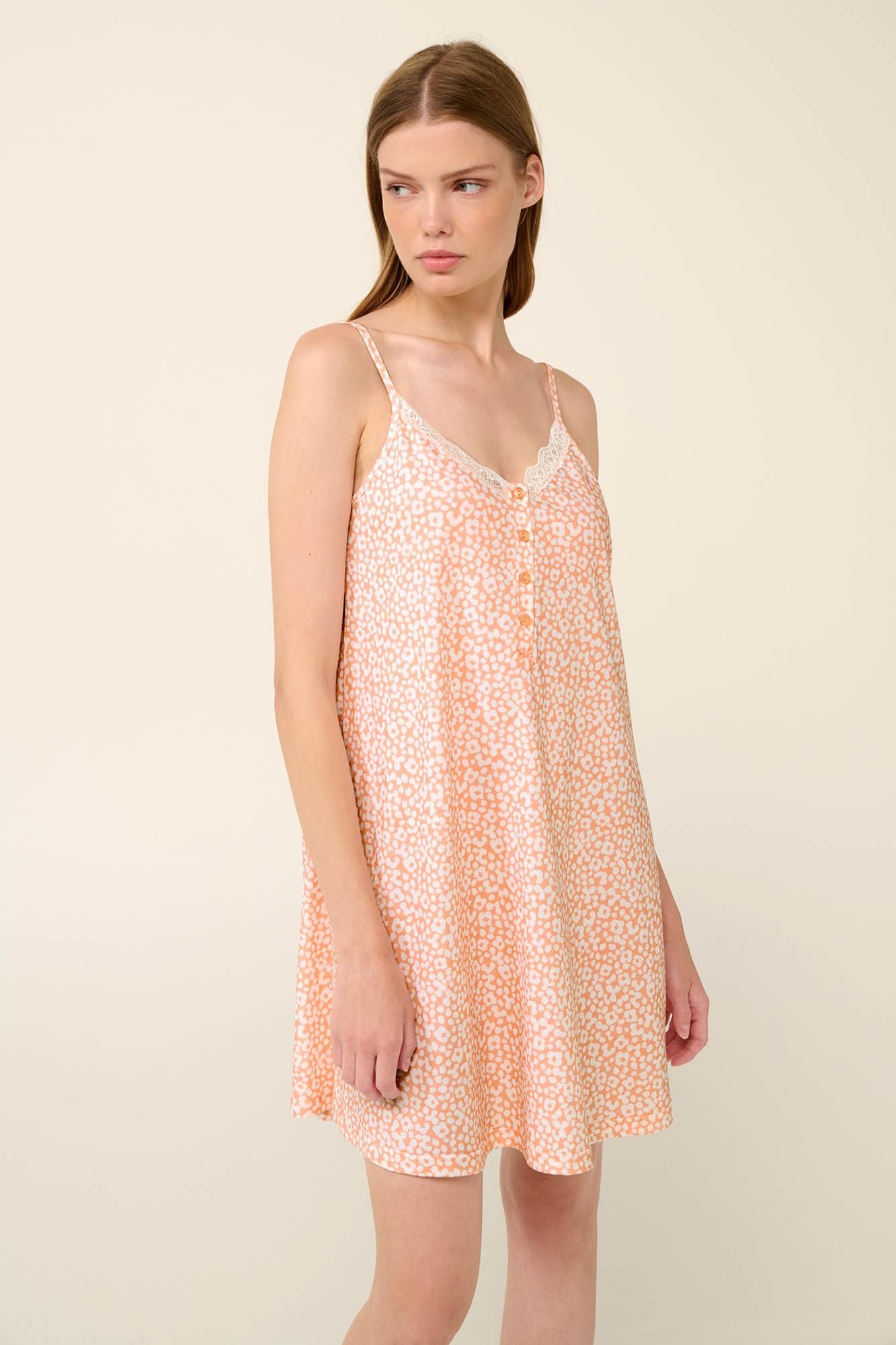 Ανάλαφρο καλοκαιρινό νυχτικό με floral print cotton με λεπτές τιράντες