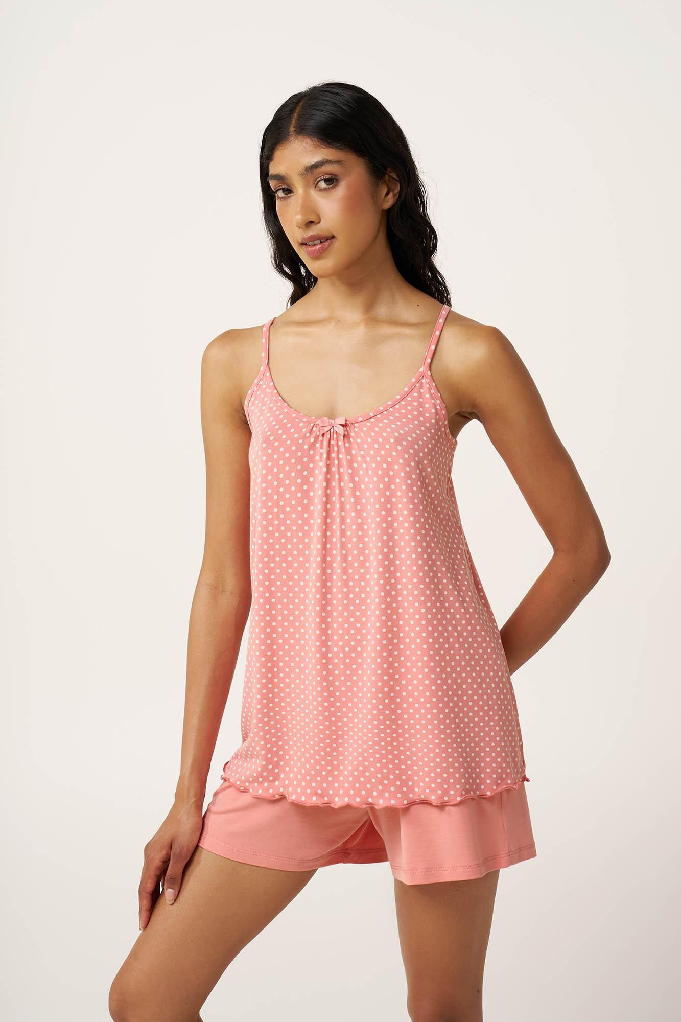 Vamp Micromodal Πουά Babydoll 24063-PINK TAN